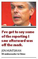 The US ambassador to China on Friday hit out at the American media for their negative coverage of US President Barack Obama's visit to China, saying they had failed to take into account important progress on many issues.