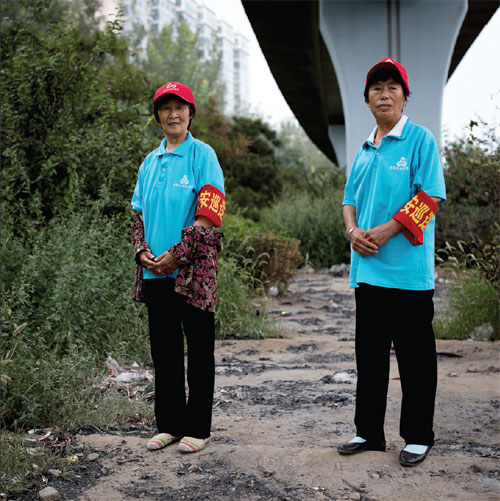 Meng Xianzhen (left), 70, and Liu Yuzhen, 68, are two volunteers from Beijing's suburbs. Photos by Kuang Linhua / China Daily |