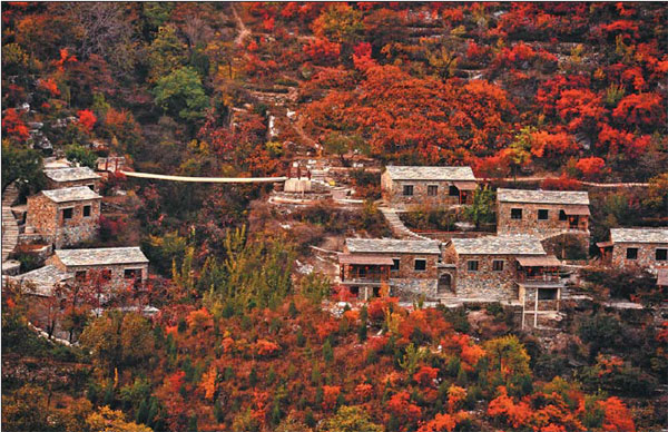 Huangshandian village in southwest Beijing's Fangshan district organizes a mountain climbing festival in autumn, when the area turns beautiful with red foliage.Photos Provided To China Daily |