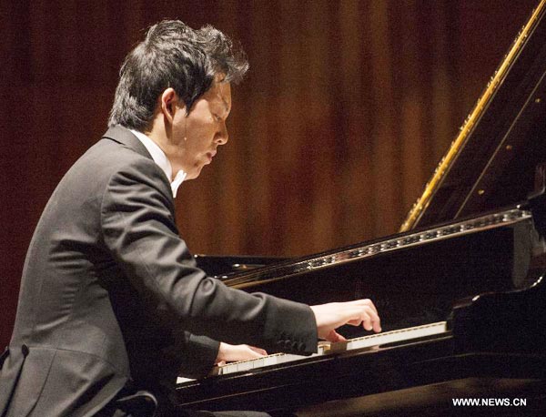 Chinese pianist Li Yundi performs at Lisinski Concert Hall in Zagreb, capital of Croatia, March 11, 2014. [Photo/Xinhua]