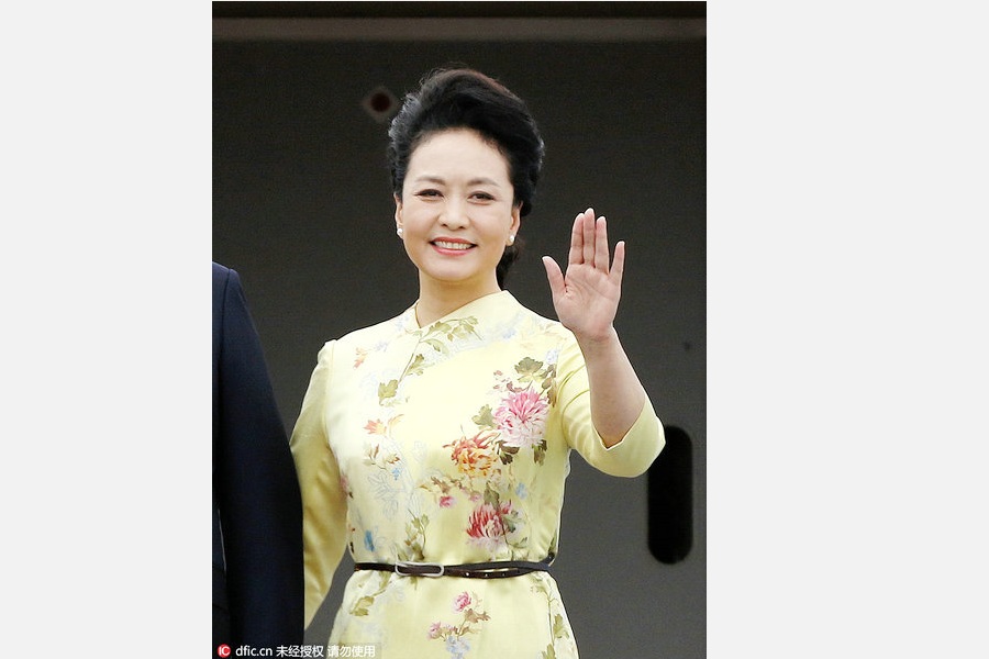 She was called "Peng Mama" (Mother Peng) as a term of endearment when she became first lady. As a celebrated soprano, Peng has been well-known for her beautiful voice since her debut at the 1982 CCTV Spring Festival Gala. She is the first soprano in China to receive a master's degree in Chinese folk vocal music. Her wide vocal range conveys a strong passion in Chinese folk music in a gentle, lovely, yet powerful way. Her famous songs include Ode to Red Plum Blossom and On the Hopeful Field. Her fashion sense, called "Liyuan Style", is a symbol of grace and elegance. Since 2004, Peng has devoted herself to many programs for the public good, such as the help for AIDS and tuberculosis patients and a stop smoking campaign. Her image and actions reflect the beauty - inside and out – and the pleasant character of Chinese women.