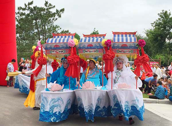 The "Land Boat" folk dance is performed during the rural tourism culture festival in Yanqing district, Beijing, July 21, 2017. [Photo by Bi Nan/chinadaily.com.cn] |