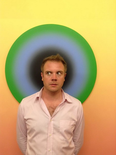 Tom Pattinson in front of artwork at a SURGE Art Beijing exhibition in 2014.Photos Provided to China Daily |