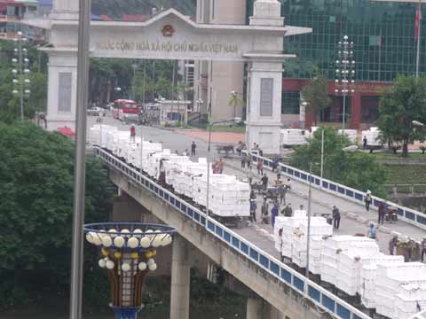 越南老街人涌入河口口岸