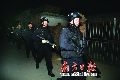 湛江特警在打黑行动中。