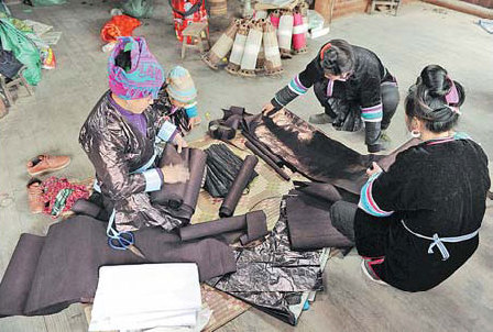 图一:贵州省小黄村(音译)的侗族妇女在缝补服饰,一些妇女也在使用缝纫机