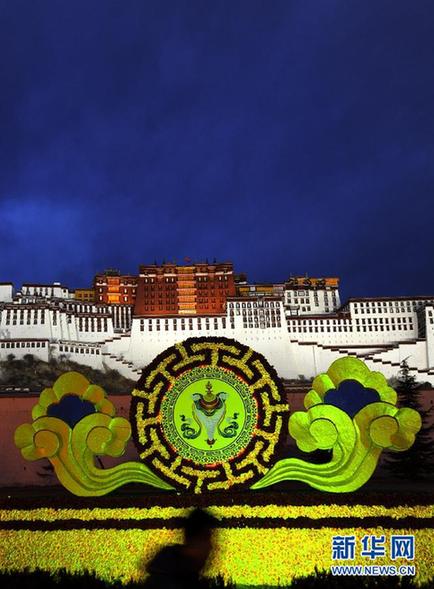 布达拉宫广场上摆放的吉祥图案——海螺,是好运常在的象征(2月19日摄)。为迎接即将于2月22日到来的藏历水龙新年,拉萨布达拉宫广场及街头装饰一新,充满节日喜庆气氛。新华社记者觉果摄