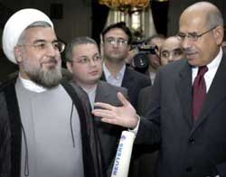 "There are a lot of questions that are still on the table and there were a lot of promises made during this trip and now Mr El Baradei is expecting these promises to be turned into action in the coming days," she said. Iran insists its nuclear program is geared solely to generating electricity from nuclear reactors. Iran's often upbeat ambassador to the IAEA Ali Akbar Salehi said both sides were "totally satisfied" with the talks and predicted unspecified "eye-catching developments" soon. El Baradei said Rohani had "expressed Iran's willingness to sign the Additional Protocol" on tougher inspections but still had some "apprehensions" about how the protocol would work. Hard-liners in Iran have said signing the protocol would be tantamount to sanctioning spying on the country. Government officials have voiced concerns that inspectors could visit military or religious sites. "I made it very clear that all these apprehensions are unfounded. I mean the protocol is never meant in any way to compromise state sovereignty, security, dignity and technology development," El Baradei said. ROHANI 'NOT PESSIMISTIC' Asked by reporters whether Iran was optimistic about signing the protocol, Rohani said: "It will all become clear in the negotiations but of course, I'm not pessimistic." Rohani said Iran would voice its concerns again at talks with IAEA officials in Tehran starting next week, adding that it was important they were taken into account. El Baradei has said that while signing the Additional Protocol would be a positive step by Iran, the IAEA's immediate priority is making sure Iran has provided it with full details on the history and development of its nuclear program to date. IAEA interest is focused on Iran's sophisticated uranium enrichment facilities which the United States says are at the heart of a clandestine attempt to build an atom bomb. Iran says it needs to produce low-grade enriched uranium to use as fuel in nuclear power reactors. Highly enriched uranium can be used in nuclear bombs and the IAEA has found traces of it in samples taken at two nuclear sites.