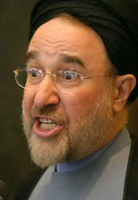 Iranian President Mohammad Khatami answers a journalist's question after the cabinet meeting in Tehran June 16, 2004.  [Reuters]
