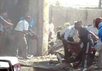 The blast destroyed nearby shops and turned cars into mangled, burned out wrecks. Charred and dismembered bodies lay in a street amid pools of blood, building debris and shattered glass.