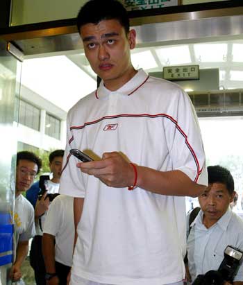 Yao Ming upon arrival at Shanghai's Hongqiao airport September 3, 2004.