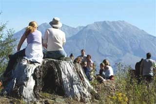 Scientists said they do not expect anything close to the devastation of Mount St. Helen's May 18, 1980, explosion, which killed 57 people and coated much of the Northwest with ash. "Of course the volcano reserves the right to change its mind," said monument scientist Peter Frenzen with the U.S. Forest Service, which operates the park. The mountain's alert was raised to Level 3, the highest possible, meaning an eruption is imminent. But scientists on Sunday discussed lowering their alert to indicate only that an eruption is possible. "I don't think anyone now thinks this will stop with steam explosions," geologist Willie Scott said Sunday at the Geological Survey's Cascades Volcano Observatory in Vancouver, Wash., about 50 miles south. Many spectators couldn't wait out the mountain, which runs on geological time rather than by the human clock. Sunday's sunset brought a mass exodus off the mountain. "Our attention span is about like this," said James Wilder, 25, of Aberdeen, holding his forefinger and thumb about one-quarter of an inch apart. "We've been here five hours and we need to leave pretty soon." Scientists were unsure how explosive the eruption may be; depending on the gas content of the magma — molten rock — and a host of conditions, it could range from a passive emission to an explosion that throws up a column of ash, Scott said. Besides lava flows, ash and rock-throwing, an eruption could cause melting of the volcano's 600-foot-deep glacier and trigger debris flows to the barren pumice plain at the foot of the mountain. The 1980 blast obliterated the top 1,300 feet of the volcano, devastated miles of forest and buried the North Fork of the Toutle River in debris and ash as much as 600 feet deep. This time, scientists expected populated areas to get little ash if the light west-northwest wind holds. The closest community is Toutle, 30 miles west near the entrance to the park in the Gifford Pinchot National Forest about 100 miles south of Seattle. The main concern was a significant ash plume carrying gritty pulverized rock and silica that could damage aircraft engines and the surfaces of cars and homes.