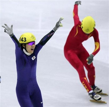 Jin's teammate, Choi Eun-Kyung, was disqualified for impeding in the