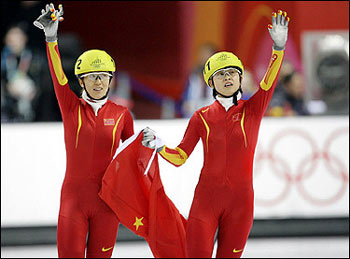 Olympic Games on Saturday, Feb. 25, 2006. At right is Wang Meng who earned