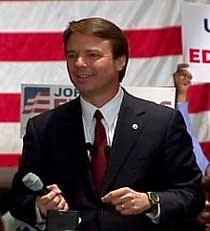 | Edwards pauses during a speech to supporters in Atlanta Tuesday. [AP] |