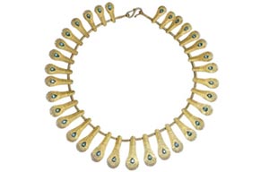 "There is something about the necklace on the skin," Marie-Helene de Taillac said, carefully hooking one of her new pieces, a 22-karat gold and diamond lace necklace, around her neck.