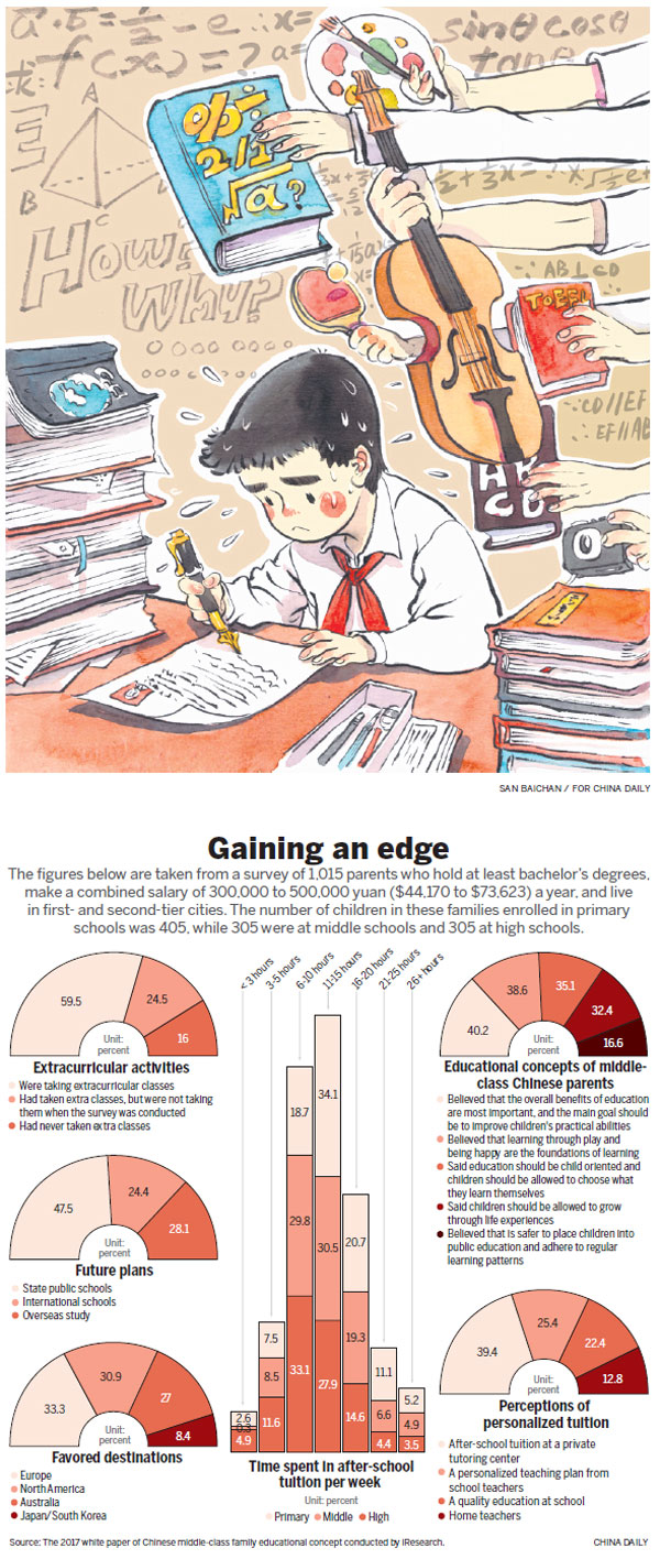 Though some observers may be concerned that these experiences will add to the burden on youngsters, many parents believe that a wide range of skills provides more opportunities for children, whose potential talent can be better discovered this way, compared with exam-oriented education.