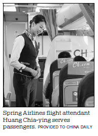 Huang was one of 26 flight attendants from Taiwan recruited by Spring Airlines in 2014. She was promoted to cabin crew chief in May.