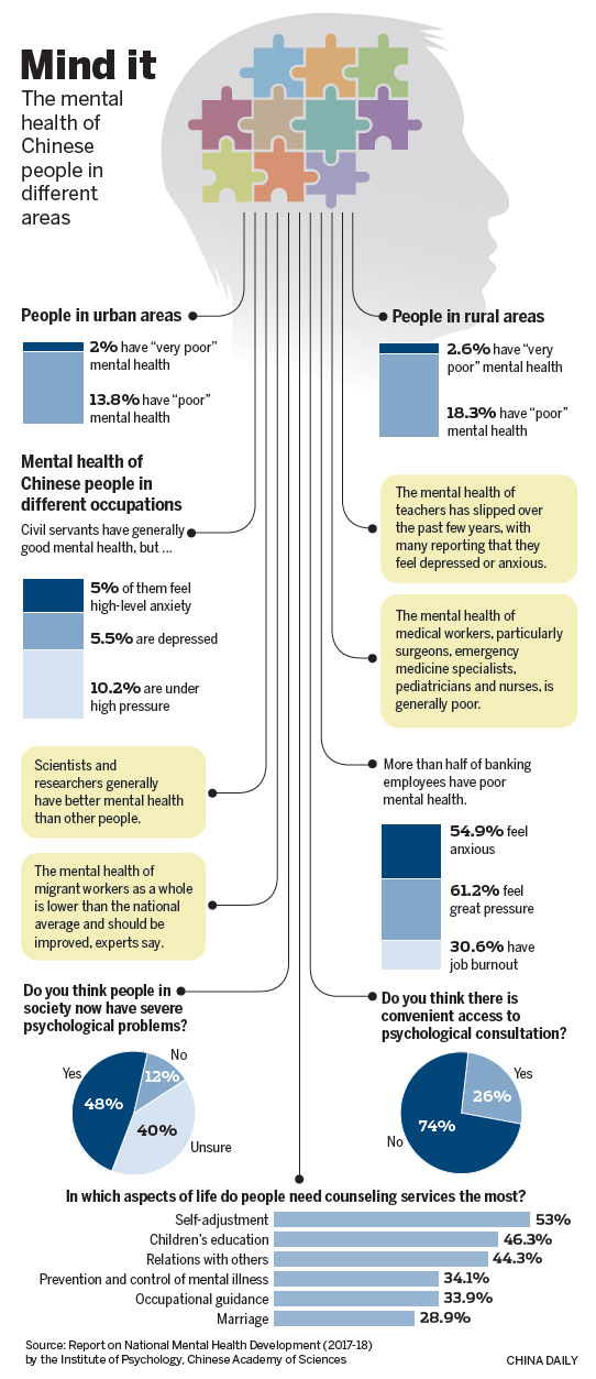 The mental health of China's senior citizens - particularly empty-nesters and those above age 75 - is not good and should get more attention, according to a report by the Chinese Academy of Sciences' Institute of Psychology.
