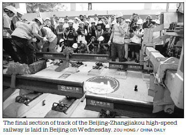 The line will also connect with the Zhangjiakou-Hohhot high-speed railway, cutting travel time from Beijing to Hohhot, Inner Mongolia autonomous region, to three hours, down from nine.