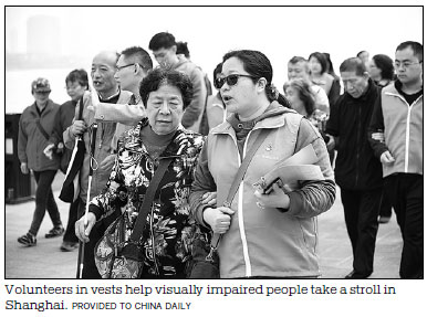 Xia Yanping, a volunteer with the service, said: "I tried to feel what the blind feel by covering my eyes with a cloth for a while, after offering service to some low-vision people. In fact, I cannot even take the first step in the darkness. It's terribly frightening and hopeless, and that's why the blind would rather 'lock' themselves at home.