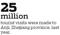 In 2018, the GDP in Anji reached 40.4 billion yuan ($5.7 billion), up 8.3 percent year-on-year. The general fiscal revenue hit 8 billion yuan, a year-on-year growth of 19 percent. Last year, Anji received over 25 million tourist visits from home and abroad, generating revenue of 32.5 billion yuan. The value added of the tourism industry accounted for 13.5 percent of the total GDP, the official statistics revealed.