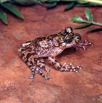 The Table Mountain ghost frog (Heleophryne rosei) lives in South Africa. Its large toe pads help it cling to rocks.