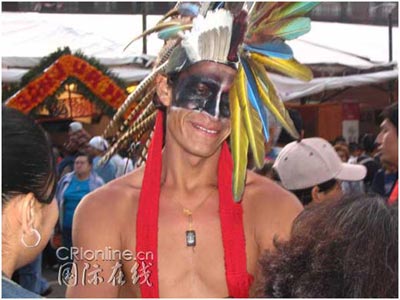 这么旺的人气自然吸引了众多小贩把摊位摆到广场上来,有卖骷髅头糖、骷髅玩具的,有拿着调色板张罗着要把你化装成鬼的,有卖印第安土著小吃的,甚至还有一个在香港中文大学念过两年中文的墨西哥老兄在帮人写中国名字,场面别提多热闹了。