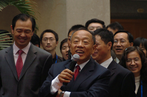 中国日报网环球在线消息:“平等中寻觅挚友,以诚实营造自我,你是中国!”在外交部橄榄厅,李肇星部长满怀深情地朗诵起他的诗《青春中国》。围绕在他身旁的是来自北京大学、清华大学、中国人民大学、北京师范大学、北京外国语大学、外交学院、国际关系学院、北京语言大学、对外经济贸易大学、中国政法大学、中国传媒大学、北京第二外国语学院等12所首都高校的180多名大学生,他们正兴致勃勃地参加外交部举办的首次大学生专场“公众开放日”活动。