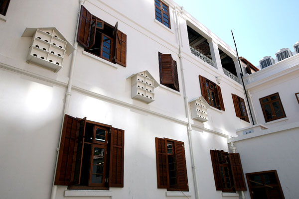 Heavy seasoned beams and lintels carved with the names of Indian constables visiting their colonial cousins, huge and ancient stable doors that weigh a metric ton each, solid staircases that testify to much use and the trampling of feet, little square windows where arms were checked in and out of the armory (now the dim sum kitchen) - these architectural features add unique characteristics and charm.