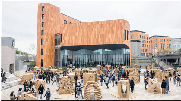 Architecture students at the Xi'an Jiaotong-Liverpool University showcase their designs on campus in Suzhou in November. [Photo provided to China Daily] |