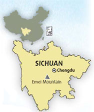 My family and I were trudging toward Emei's second-highest peak, the 3,079-m-high Golden Summit. The range's tallest crown is Qianfoshan (Thousand Buddha Mountain), which zooms 3,099 m into the sky.