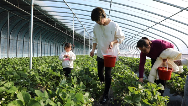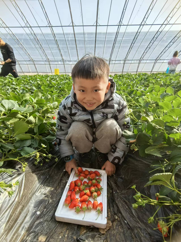 Alongside the industrious growers, numerous urban residents, often in family groups, can be seen in the greenhouses, carrying small buckets and relishing the experience of tasting and picking strawberries. "This is my first time picking strawberries this year. I specifically came here after hearing about the wide variety of strawberry species, large-scale production, great taste and beautiful colors," said a visitor.