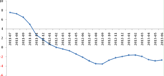 Figure 1 Changes of PPI(Producer Price Index)from June 2011 – June 2013
