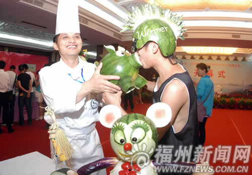 台湾果蔬雕大师黄铭波的果蔬雕作品展示,让现场观众大开眼界 本次邀请赛是迄今台湾地区来榕参加厨艺交流队伍最多的一次行业交流盛会。首次来榕的金门代表队领队陈正忠告诉记者,此次能够来到福州参赛很开心,他希望通过比赛和内地厨师多交流,促进共同发展。 据了解,榕台两地烹饪技艺的交流历史悠久,从上世纪90年代中期开始,榕台餐饮界交流日渐频繁。福州市烹饪行业协会秘书长张厚告诉记者,本次比赛将更加注重推动两岸餐饮业、厨师之间的交流,通过突出民间主体作用、行业间技术交流,培育挖掘两岸间的饮食文化,让比赛成为凝聚海峡两岸餐饮人心、汇聚业界智慧、促进行业发展的有效平台,同时更好地促进福州餐饮业、旅游业的产业化、连锁化、品牌化和现代化发展。 除了厨艺表演,来自两岸的冰雕、果蔬雕大师现场展示的烹饪技艺也赢得了观众阵阵掌声。 花絮 20分钟,方形冰块成“旗鱼” 削刀、平口刀、电锯、角刀交错在冰块上迅速移动,冰花四散落地,不到20分钟,一块四四方方的冰块便化身为一只栩栩如生的旗鱼展现在众人眼前。昨日的厨艺邀请赛和烹饪技艺展示现场,台湾冰雕大师徐旺火的冰雕表演,让众人啧啧称奇。 果蔬版米奇米妮亮相 用西瓜和茄子等果蔬雕刻而成的米奇米妮,用玉米制作的女神卡卡……台湾果蔬雕大师黄铭波的果蔬雕作品展示,让现场观众大开眼界,市民纷纷上前合影留念。 来源:福州新闻网 编辑:唐智 |