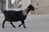 Unusual pet, a black goat!