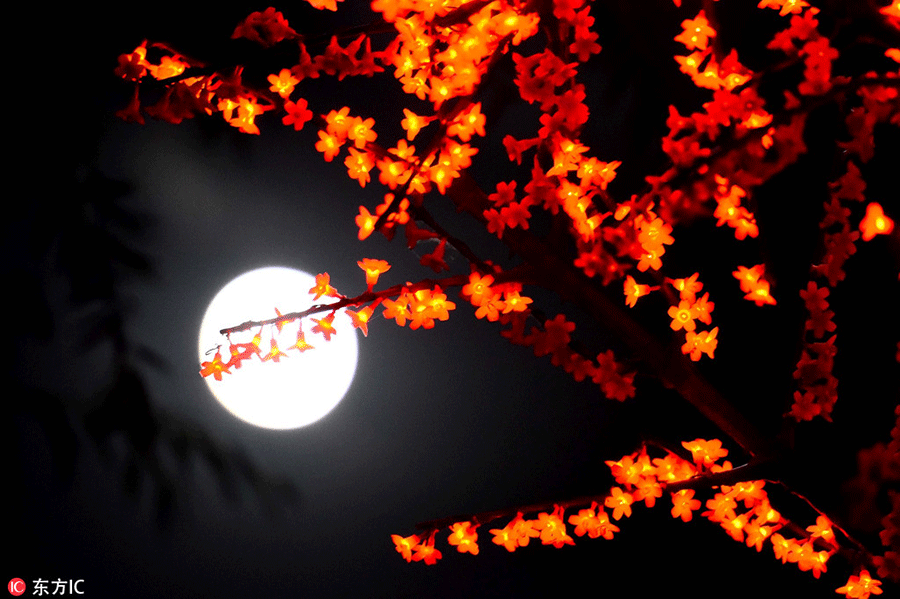 Full moon rises over Weifang, East China's Shandong province, on September 17, 2016. [Photo/IC]
