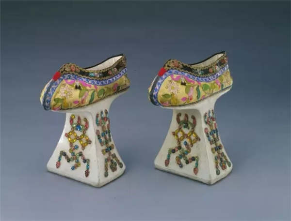 A pair of flowerpot-bottomed chopine, 20.5 cm high, from the Palace Museum's collection. [Photo/Official Wechat account of Palace Museum's Taobao]