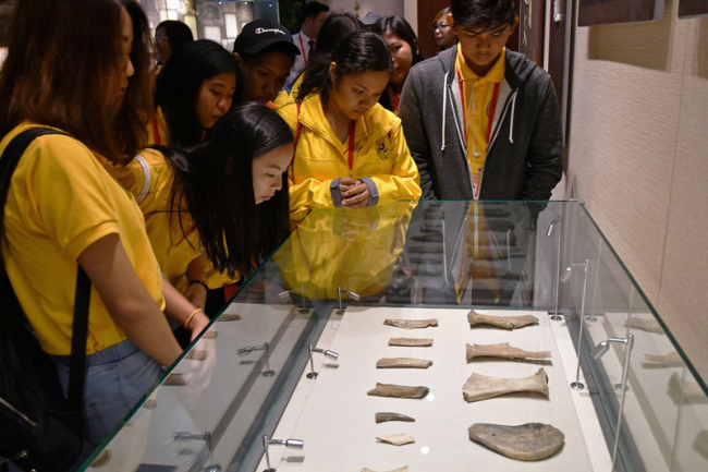 Over 90 Philippine teenagers of Chinese took a tour to Wang Yirong Museum in Yantai, East China's Shandong province recently to explore the origin and evolution of Chinese characters.