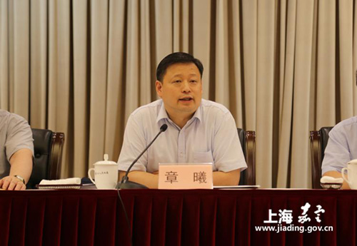 Zhang Xi, head of Jiading district, stresses the importance of garbage classification to local ecology and regional governance on July 23. [Photo/jiading.gov.cn] |