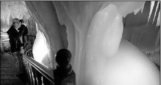Visitors experience the chilly world of the country's biggest ice cave in Ningwu county, Shanxi province.Wei Xiaohao / China Daily |