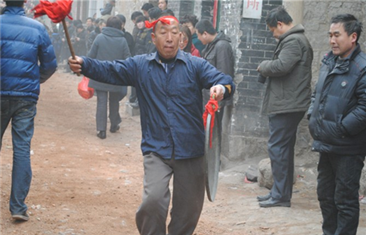 There were six Shehuo troupes altogether, consisting entirely of farmers from the Yanhu district of Yuncheng who came to the city’s Shun Imperial Tomb Square to provide gong and drum and yangko (rural folk dance) performances, on that day to help celebrate Spring Festival.