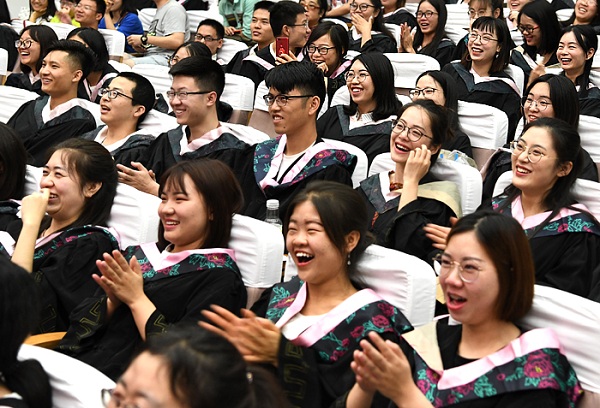 Undergraduates from School of Political Science and Public Management attend the commencement ceremony at Shanxi University in Taiyuan on May 29. [Photo/sxu.edu.cn] |