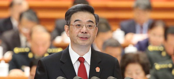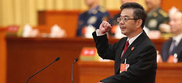 Chief Justice Zhou Qiang delivers the Supreme People's Court work report at the annual session of the National People's Congress at the Great Hall of the People in Beijing on March 9, 2018.