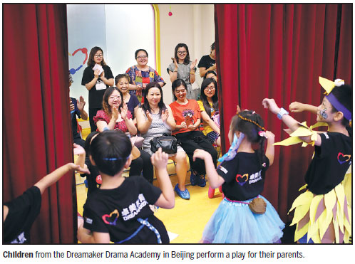 On a Friday afternoon this month, Chen Shilei finished her work quickly and rushed to the fourth floor of a shopping mall in Beijing's Shijingshan district. Her 5-year-old son, Wu Zijing, was participating in a stage performance at the conclusion of a five-day drama camp.