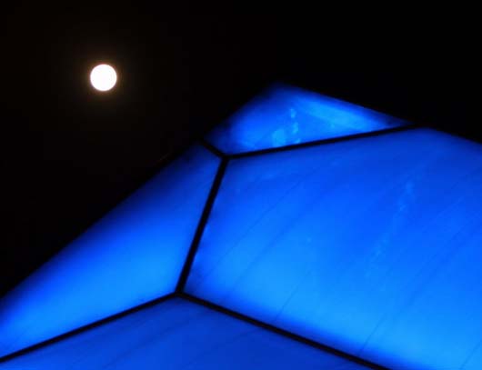 The National Aquatics Center, also called the "Water Cube" is photographed with the full moon in the background on Monday. The "Water Cube" finished hosting all its swimming events on September 15, 2008. [Sohu.com]