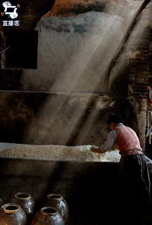 A woman sorts through rice that will be used to make baijiu, or rice wine in a home brewery in Meizhou, Guangdong Province. [Moobol.com]