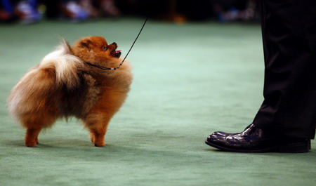 Updated: 2008-02-13 17:00 ![]() A Pomeranian looks up to his handler while competing in the Toy group at the 132nd Westminster Kennel Club Dog Show at Madison Square Garden in New York February 12, 2008. [Agencies] |