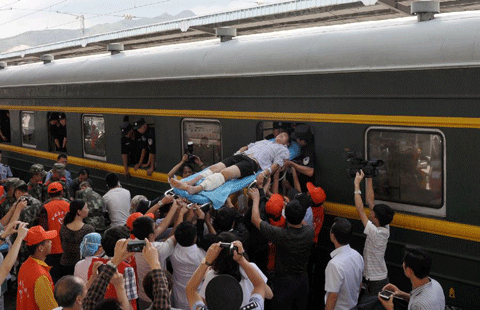 Chinese beekeeper She Ping, 32, covered his body with 33.1 kg of bees — an estimated 331,000 of the creatures — in one hour in Southwest China’s Chongqing municipality, April 18, 2012. Local media reported that She Ping had broken the previous China record of 59 pounds (26.8 kg) of bees which had been set by another beekeeper, Ruan Liangming, in 2008. She Ping, a third generation of beekeeper in his family, said he kept himself unwashed for three days to better attract bees.