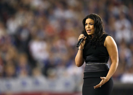 American Idol television show winner Jordin Sparks sings the national anthem before the start of the NFL's Super Bowl XLII football game between the New England Patriots and the New York Giants in Glendale, Arizona, February 3, 2008. [Agencies]